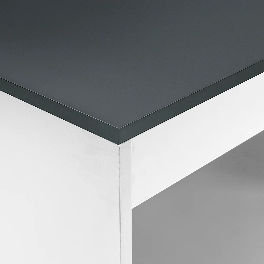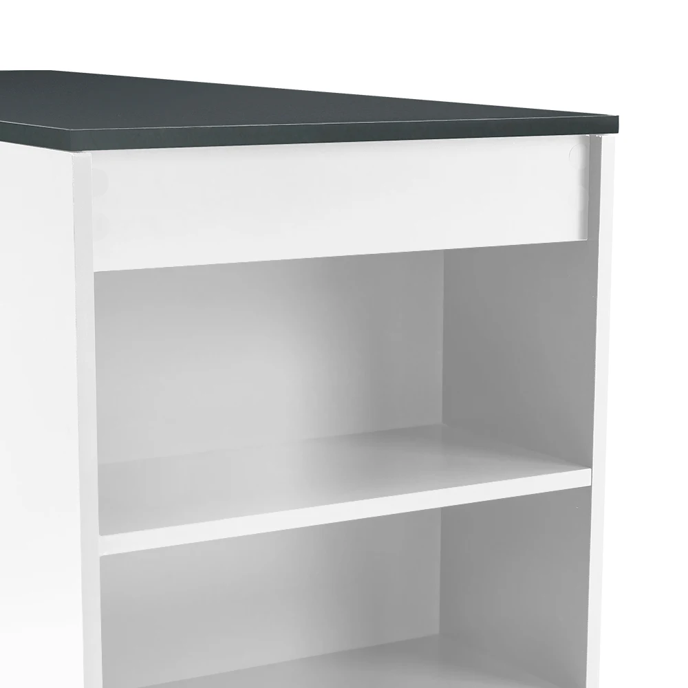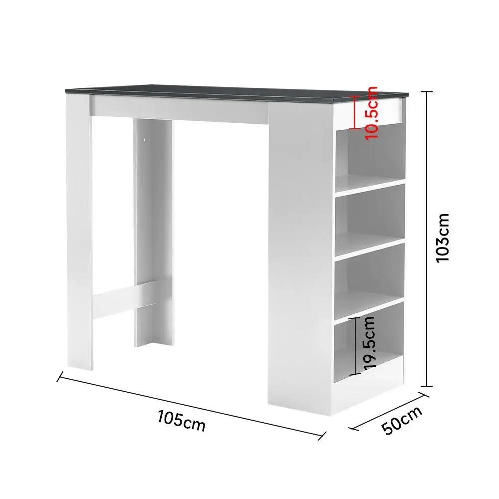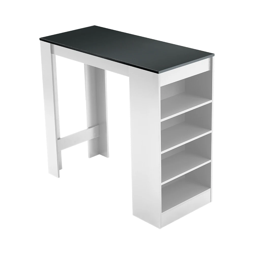 ↑White Wooden Bar Table with Open Shelves,Grey Table Top - TopDealBox