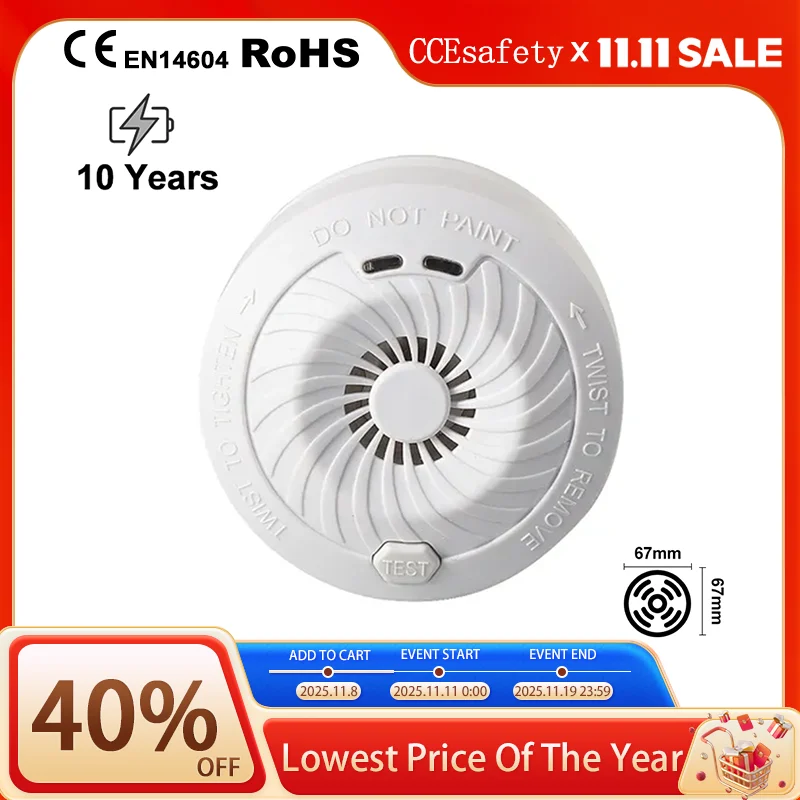 β‘Quick viewSmoke Detector 10 Year Smoke Sensor Independent Fire Alarm CE EN14604 Certified With CR123A Battery LED Indicator Home Security14.79 GBPGBP 181.75Hotβ β β β β 4.2