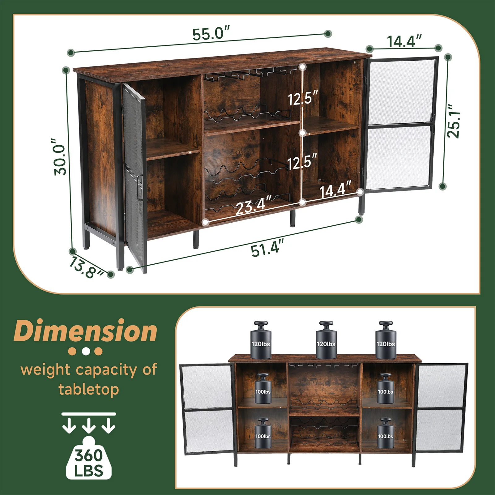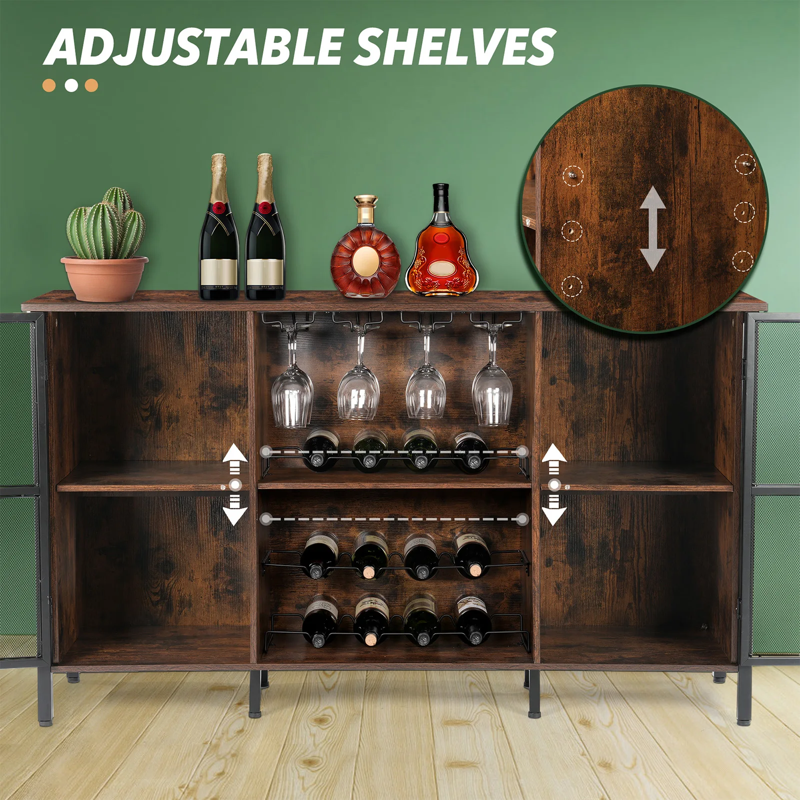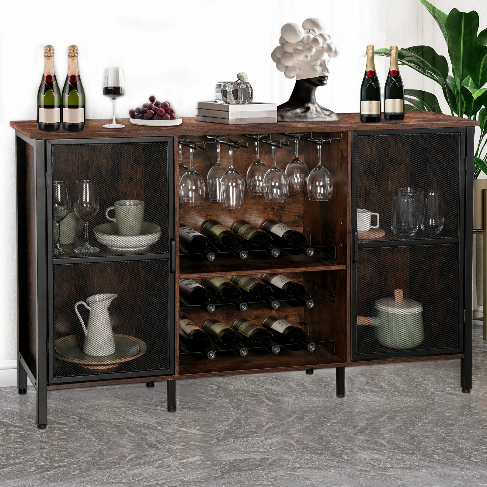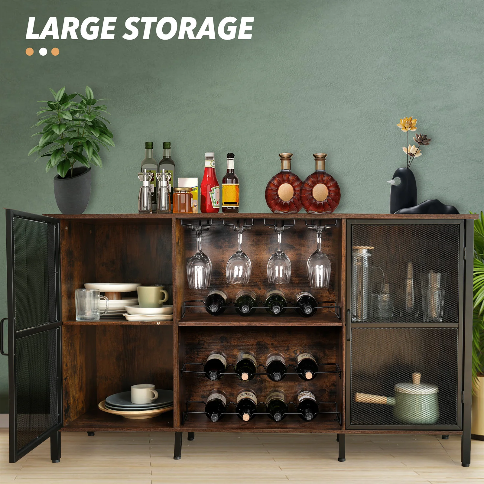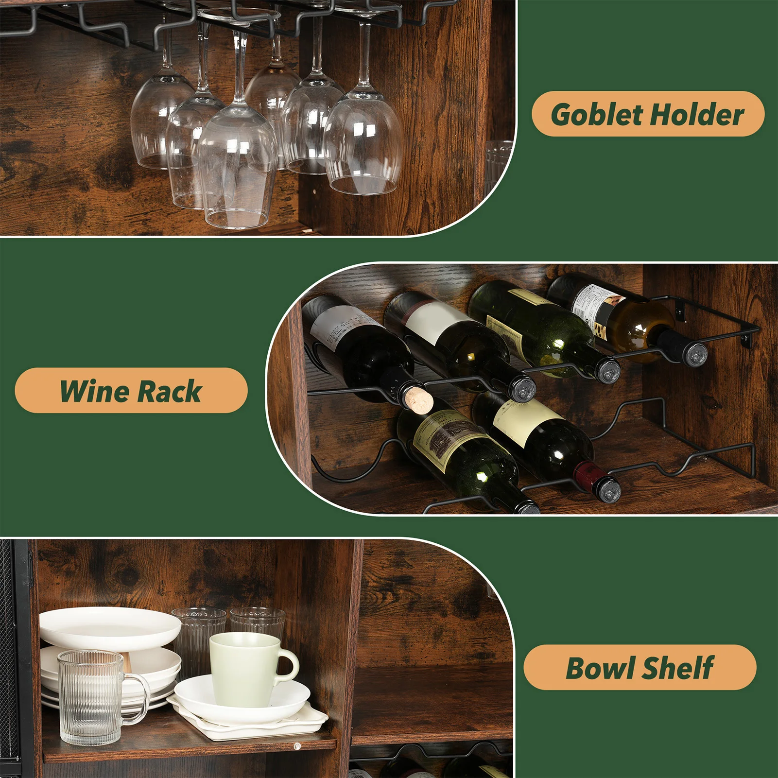 ↑Wine Cabinets Farmhouse Sideboard and Buffet Cabinet for Home Kitchen Dining Rustic Brown Rustic Wood Wine Bar Cabinet - TopDealBox