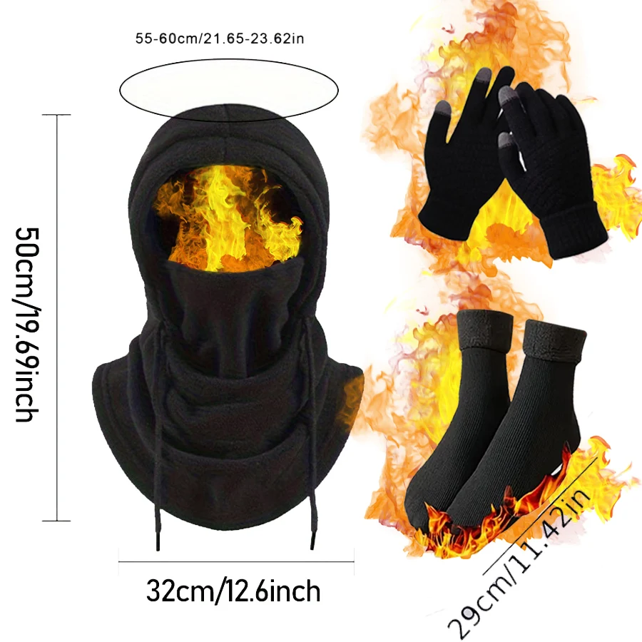 ↑Winter Balaclava Gloves Socks 3PCS Set, Thermal Skiing Hiking Gear for Men Women, Cold Weather Face Mask Christmas Gift - TopDealBox