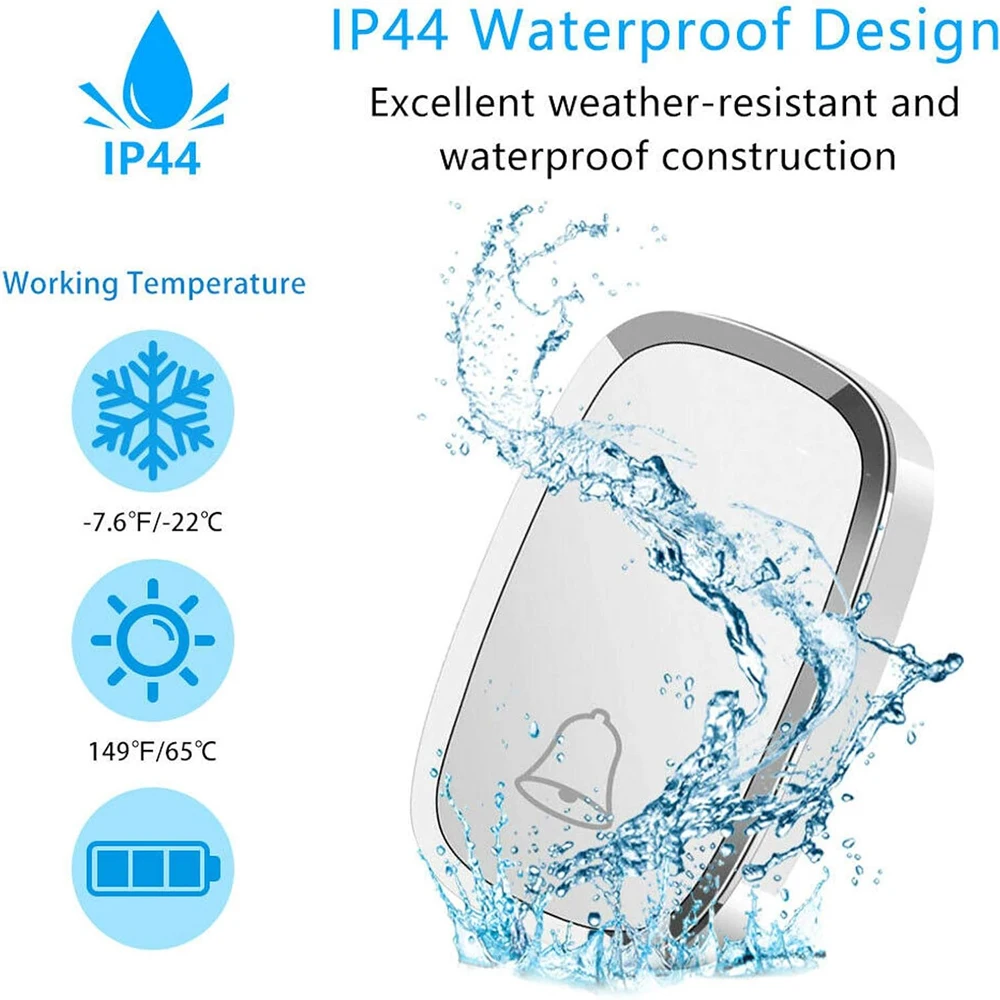 β‘Quick viewSmart Wireless Doorbell Family Door Bell Chime Kit 300M/1000Ft Long Distance 60 Songs Intelligent Doorbell Kit US EU Plug4.15 GBPGBP 84.84Hot