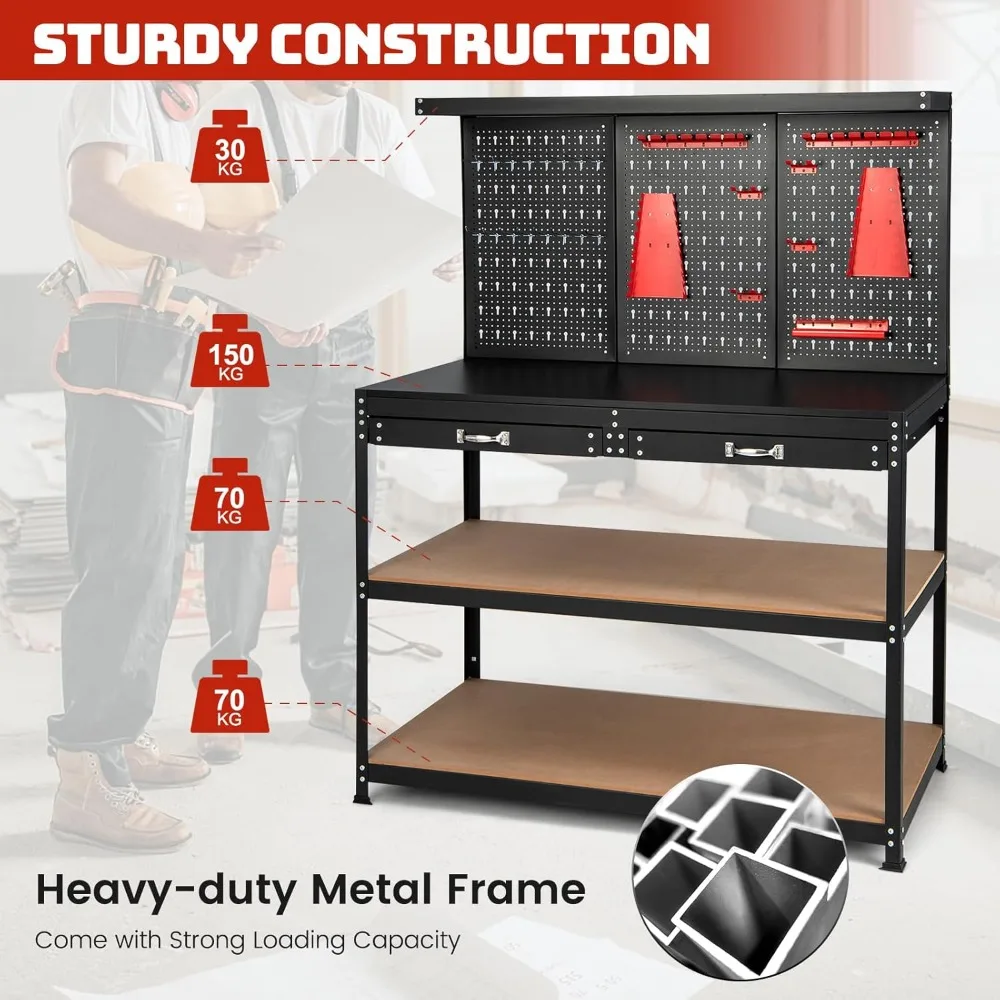 β‘Quick viewWorkbench with Pegboard, Multi-Use Workbench with 4 Shelves, Topping Space,2 Drawer, Robust Metal Frame, Workbenches163.39 GBPGBP 1475.97Hot