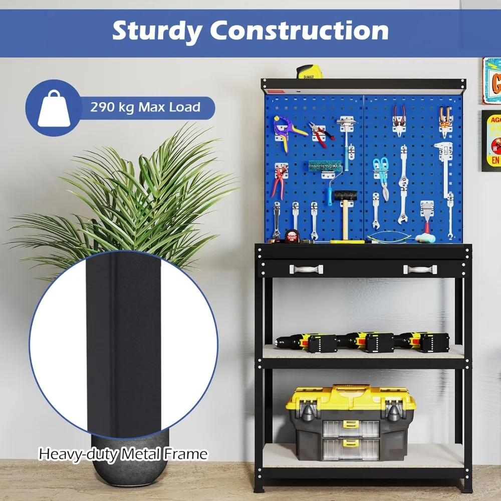β‘Quick viewWorkbench with Pegboard, Multi-Use Workbench with 4 Shelves, Topping Space,2 Drawer, Robust Metal Frame, Workbenches163.39 GBPGBP 1475.97Hot