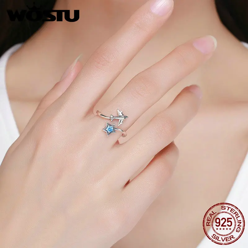 ↑WOSTU 100% Real 925 Sterling Silver Faraway Rings For Women Party Jewelry Gift Clear CZ Adjusetable Rings CQR623 - TopDealBox
